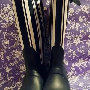 Selling a barely used pair of navy blue and white striped hunter boots. In excellent shape, non-smoking home.