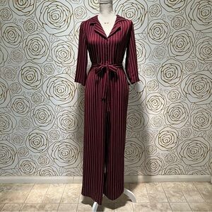 NWT Bobeau Burgundy and Ivory Striped Jumpsuit