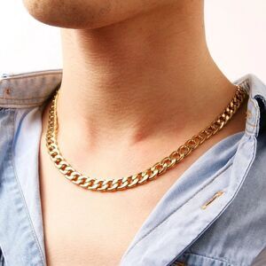 This gold flat curb chain is 20 inches long and 9 mm thick. Made of gold-colored stainless steel, the color won't fade or stain your skin. Chains like this are extremely on-trend. Nab this one before it's gone!