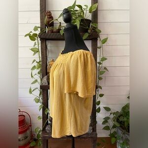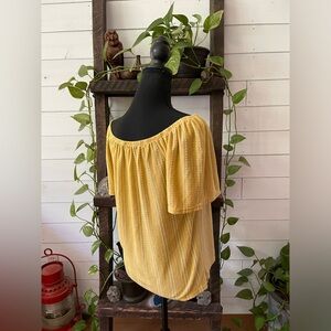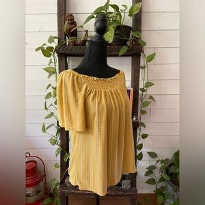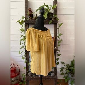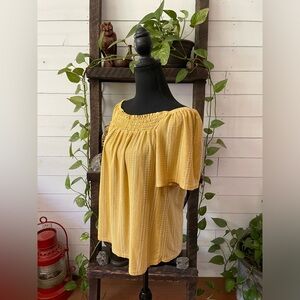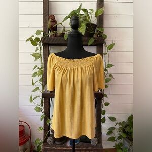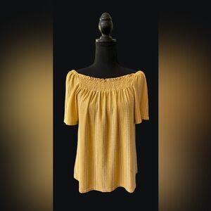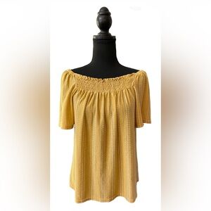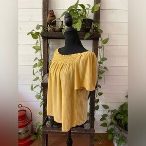 W5: BoHo Peasant Style Mustard Blouse with White Stripes