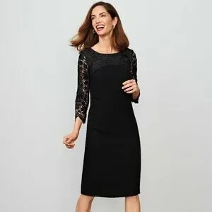 Women’s Talbots Long Lace Sleeve Black Sheath Knee Length Occasion Dress EUC