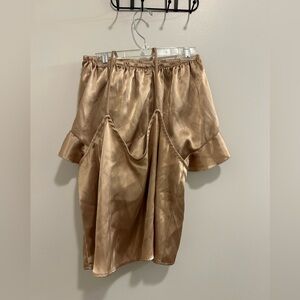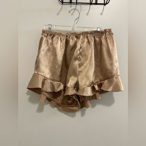 Lulus Sweetest Dreams Gold Satin Ruffled Two-Piece Pajama Set