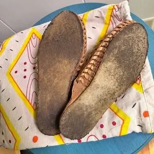 Excellent condition! I just got these a couple weeks ago and have only worn a couple times, outside only once. The soles get discolored almost immediately, but there is no wear on them. They are so comfortable, but in my opinion run a tiny bit small. Would be perfect for someone who wears 6.5-7