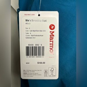 Blue, stretchy Marmot hiking pants. Tag still on, just didn't fit me. Outdoor, rock climbing, scramble, backpacking, hiking, camping.