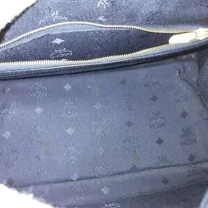 MCM printed fabric interior with one zipped pocket and leather signature stamp