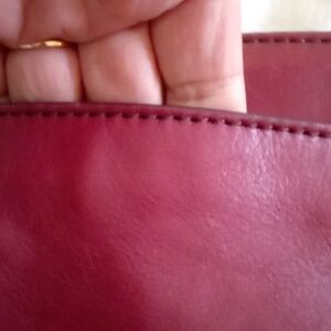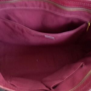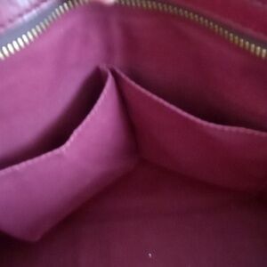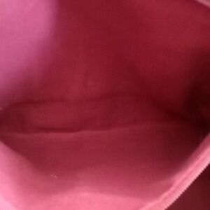 Deep Red color, logo key, Zipper pocket with leather label, 2 inside pockets, one outside pocket, only wear is on the zipper pulls (see pic) clean inside and out, smoke free pet free home. very good condition, pre loved.