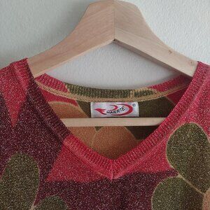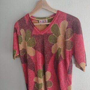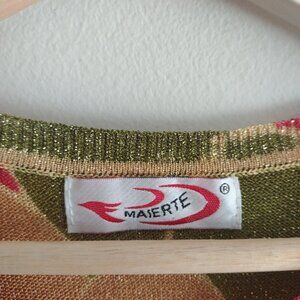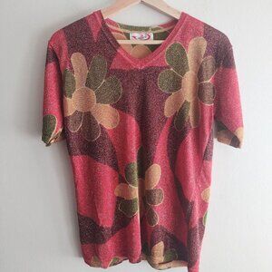Vintage 90s Maierte Metallic Floral Top M Psychedelic Baby Tee Y2K