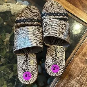 Free People Leather Saturday Slide sandals in snakeskin. New without box.