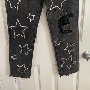 Simple Society Bling Acid Wash Super High Rise Black Straight Jean Size 00/23