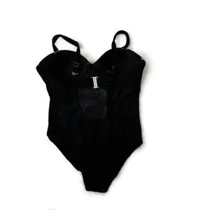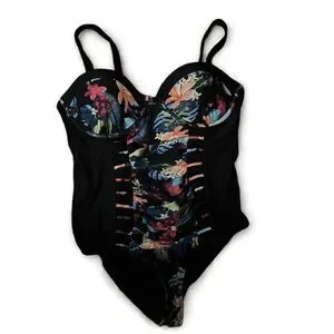 Meet Curve Black Floral Mesh Paneling Padded Swimsuit Womens Size 2XL