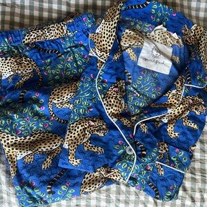 Worn once and washed in cold water, hung to dry. Short sleeve top with long pants bottoms. Crossposted.