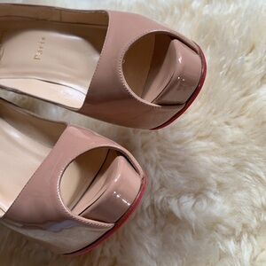 Excellent preloved condition — brand new heel tips + rubber mirror red soles in place to protect your investment and give you grip while maintaining the red-sole look, minor scuffs from only minimal wear, some spots of discoloration to patent but not noticeable when worn! See pics for more details. Box included upon request.