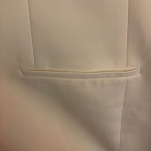 White tuxedo halter mini dress from Zara with front buttons, neck strap, lining, v-neckline, faux pockets, and open back. There are some faint marks near the pockets, as pictured. The material tag has been removed. Size XXL. Approximately 21 inches from pit to pit and 36 inches long. Smoke free and pet friendly home!