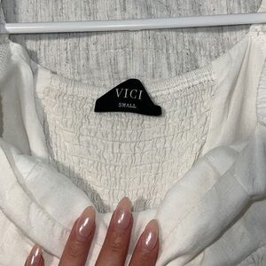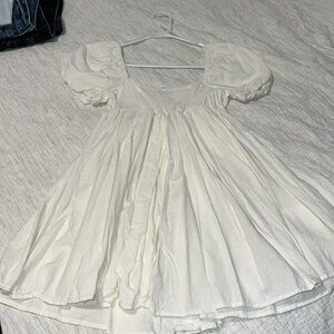 VICI babydoll off white mini dress size small - leroy linen blend puff sleeve babydoll dress. only worn once in this photo. super cute. for reference I’m 5’9 so it was a little short on me white is why I never really wore it again. but got so many compliments on this dress. pretty back detailing as well. material is stretchy. let me know if any questions