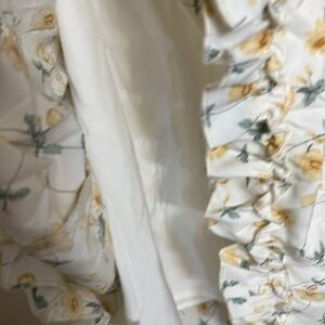 Ruffles detailed at the breast area pretty dress 🌼🌼 From the top of the breast area to the bottom of the hem approximately 33 inches could be taken up about five or 7 inches with a straps. Pit to pit is approximately 21 inches🌼🌼