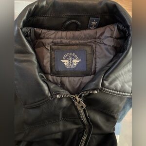 Cozy Dockers Bomber Jacket Faux Leather Brown Quilted Lining Size L