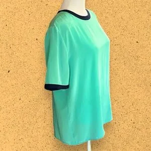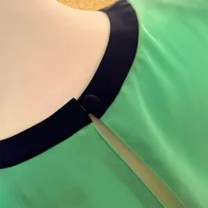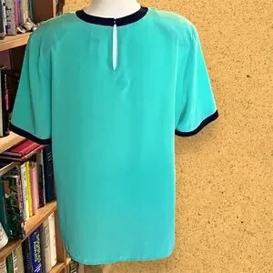 VTG 90s Turquoise and Navy Button Neck Closure Polyester Top | S