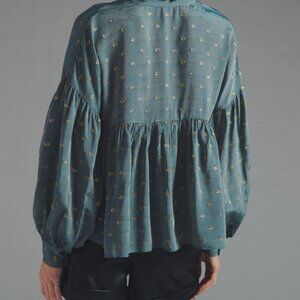 Anthropologie Floaty Gold and Slate Blue Blouse with Full Sleeves Size S