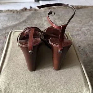 Dolce & Gabbana leather and wood strap wedges. 4” heels.
