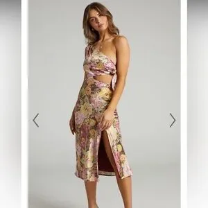Dress bought from Showpo and worn twice for weddings - sold out online. I’m a 25 waist and 32 C chest. Tie wrap shoulder and side tie detail ties, so it is adjustable.