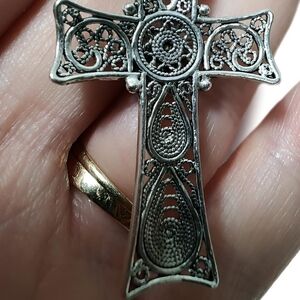 Large, Turkish made Telkari Filigree Cross pendant features incredible intricate detail, and presents itself on a hefty (approx) 3mm (approx) 17.5 inch Vintage Sterling silver Omega chain. I don't think this pair could get any better!