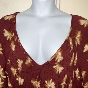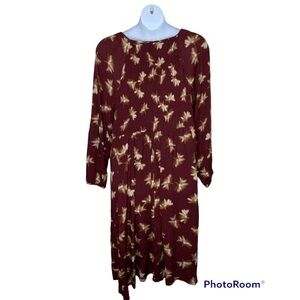 Ava & Viv Size 2X Dress Rust Brown SMOCKED FLORAL MIDI DRESS Long Sleeve V Neck