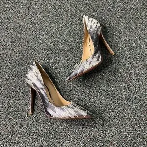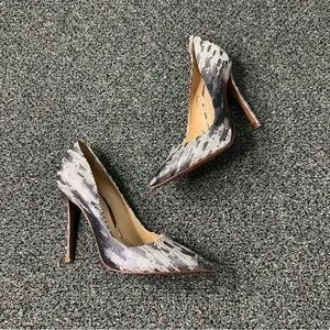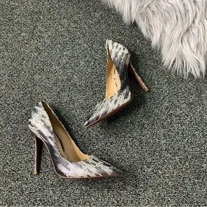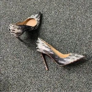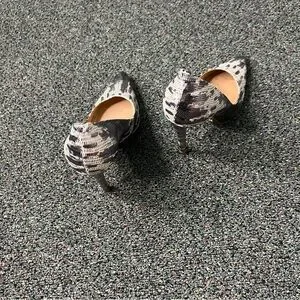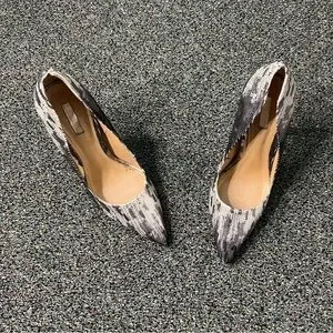 SCHUTZ Grey Black White Metallic Leather Snakeskin Print Pumps Stiletto Heel 6.5