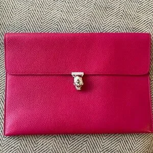 Authentic Alexander McQueenSkull leather clutch Hot pink Leather