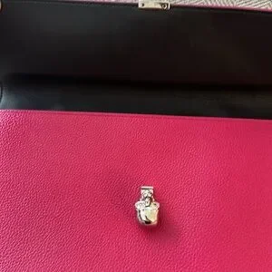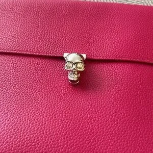 Pop of hit pink Alexander McQueen clutch. Twist skull closure. Skull is a distinguishable McQueen detail.