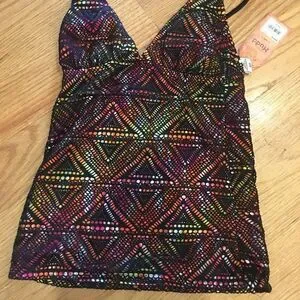 XS tankini swim top bathing suit Mudd black orange