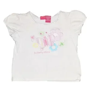 In FULL SPRING White Short Sleeve Tee with Butterfly and Flowers
