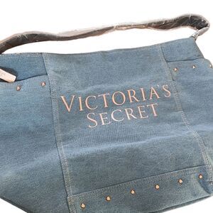 Brand new with tags Victoria's Secret denim rose Gold studded large tote bag.