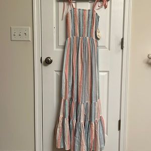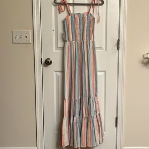 NEW Altar’d State Ivory Blue Green Stripe Smocked Maxi Dress Elastic Waist Small