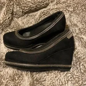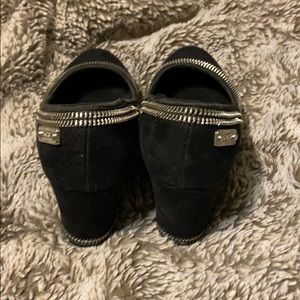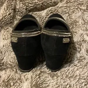 Michael Kors Black Sherry Suede Zipper Wedges Sz 2
