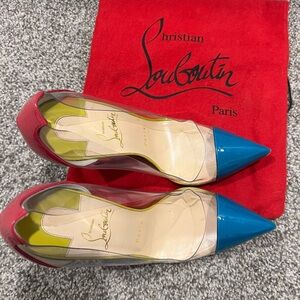 These are in good condition. They’ve been worn a couple times. There is a small white scuff on the back left heel (near the stitch) which is visible in the photos. I do have the bag, but I do not have the box.
