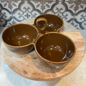 Taste of Home entertaining dishes were made in the early 1990s with a cool retro vibe. This warm brown dish can be used for condiments, nuts etc on a charcuterie board or just as part of your daily serving needs.