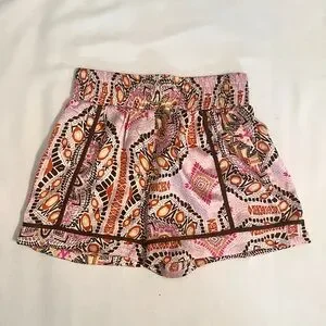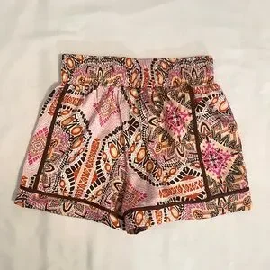 Pink, orange, yellow, brown and white print shorts
