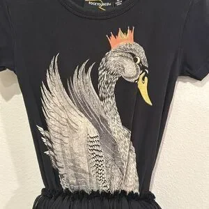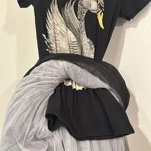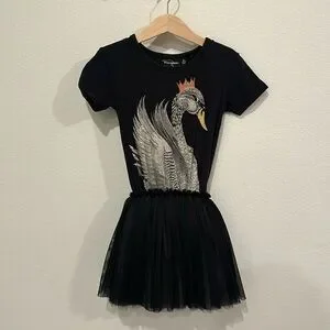 VGUC Size 6 Rock Your Kid Black Swan Tutu Dress! Second owners. My daughter never got around to wearing this dress. Runs a bit small, imo. Love this brand and style of this dress! Minimal wear. No major flaws. It’s a super comfy cotton tshirt dress with layers of tulle on the top.