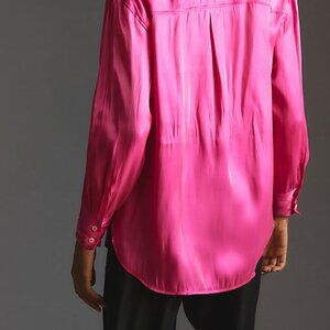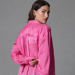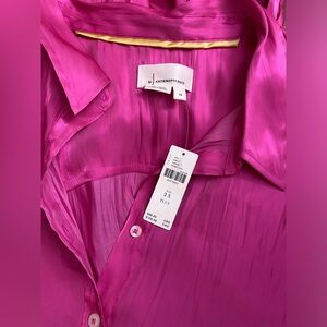 By Anthropologie Silky Iridescent Buttondown Shirt blouse pink new size 2X