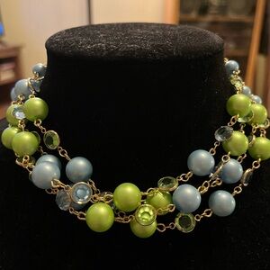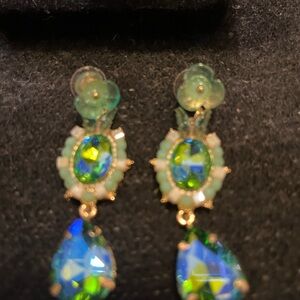 This gold tone green and blue crystal beaded necklace is adorable and adjustable to 16”. The matching earrings are dangly and sparkly. I accept all reasonable offers. 10% of all proceeds go towards our local Special Olympics team athletics. Thanks for looking 😊