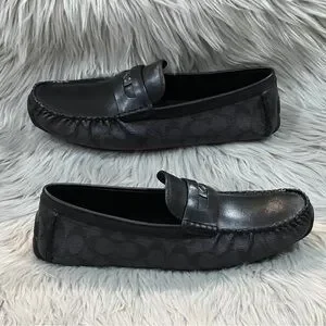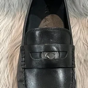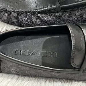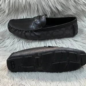 COACH Men’s C Coin Leather Driver Loafer, Black. New