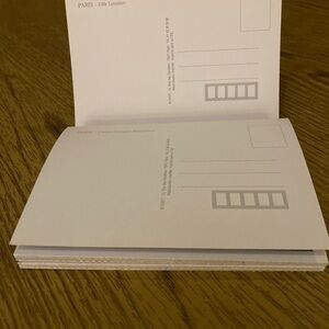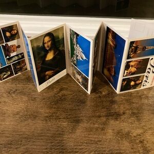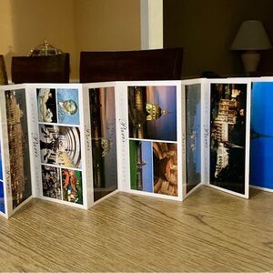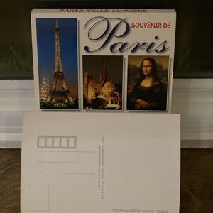 Postcards have glossy pictures of art, architecture and popular landmarks.