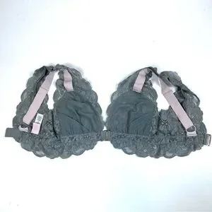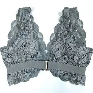 HAH Hot As Hot Got UR Back Gray Silver Lace Bra Size XS