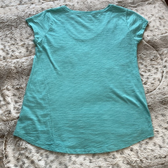 Gap easy tee. Size Medium. Scoop neck, cap sleeves and shirttail hem. Beautiful aqua color. No tags but never worn and in new condition. Approximate measurements:
