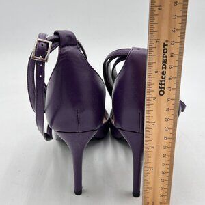 FSJ Purple Pointed Toe D'Orsay T Strap Stiletto Heel Buckle Ankle Straps Pump