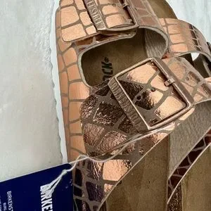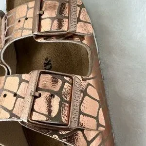 Birkenstock Arizona Sandals 37 Womens US 6/6.5 Gator Gleam Copper Buckle Strap