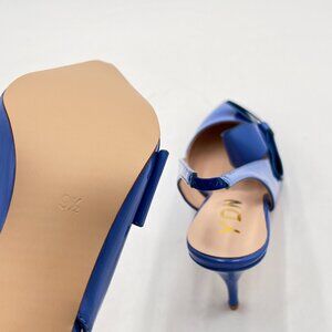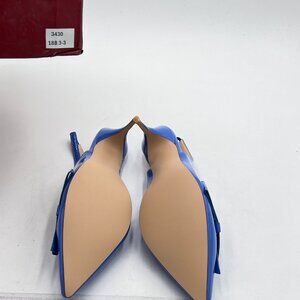 YDN Sky Blue Stiletto Heel Pumps Bow Pointed Toe Slingback Slip on Dress Shoes