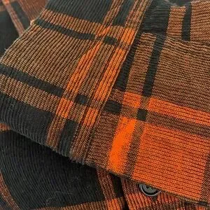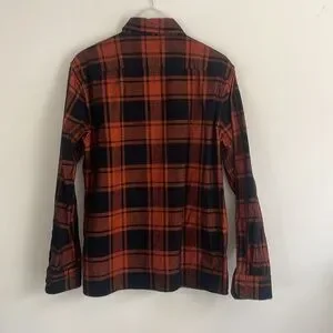 Size large Banana Republic shirt. Plaid corduroy black buttons. Untucked slim fit.slight wear from cuff roll shown in photos on left arm. straight hem
