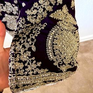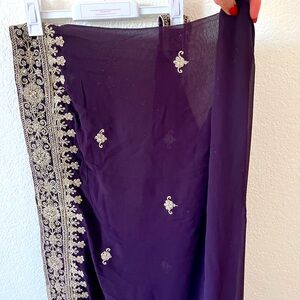 STUNNING SHARARA! Absolutely beautiful! Wine coloured with gold embroidery and pearls. Peplum top, net dupatta, sharara trousers. UNWANTED GIFT - BRAND NEW, NEVER BEEN WORN CAN BE ALTERED TO MAKE SMALLER/BIGGER