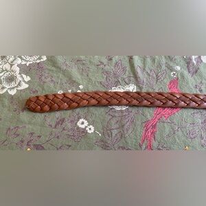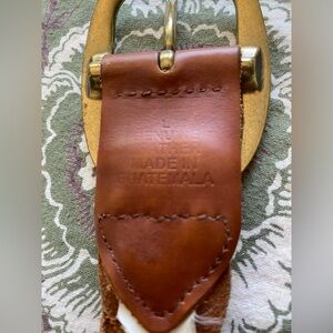 Genuine Leather. Buckle may be Brass. Leather is approximately 46.5 inches long.